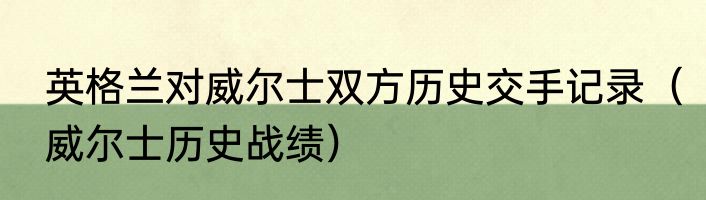 英格兰对威尔士双方历史交手记录(威尔士历史战绩)