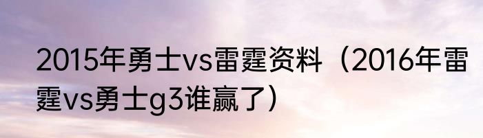 你好,2015年勇士vs雷霆是指2015年NBA季后赛西部决赛中,金州勇士队对阵俄克拉荷马城雷霆队的比赛。