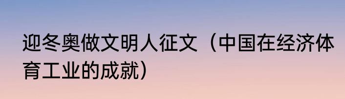 迎冬奥做文明人征文(中国在经济体育工业的成就)