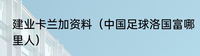 建业卡兰加资料(中国足球洛国富哪里人)