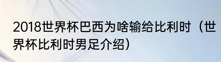 2018世界杯巴西为啥输给比利时(世界杯比利时男足介绍)