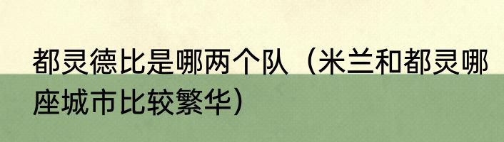 都灵德比是哪两个队(米兰和都灵哪座城市比较繁华)