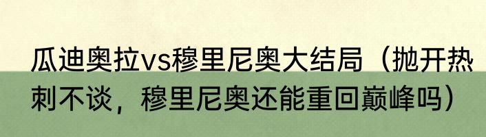 瓜迪奥拉vs穆里尼奥大结局(抛开热刺不谈,穆里尼奥还能重回巅峰吗)