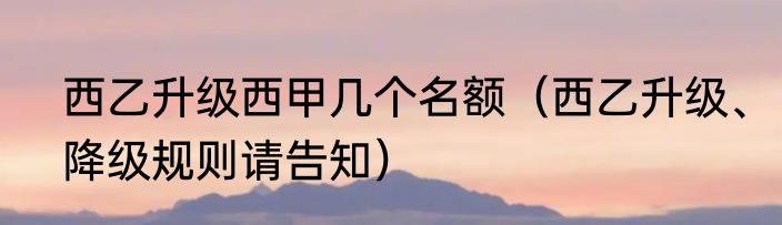西乙升级西甲几个名额(西乙升级、降级规则请告知)