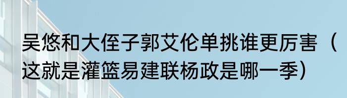 吴悠和大侄子郭艾伦单挑谁更厉害?