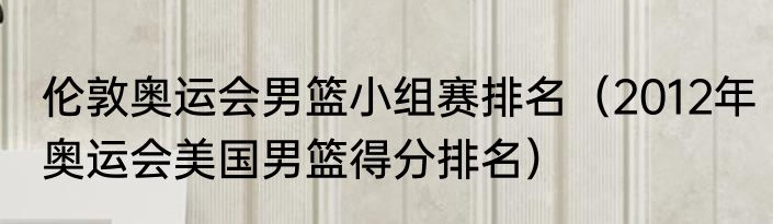 伦敦奥运会男篮小组赛排名(2012年奥运会美国男篮得分排名)