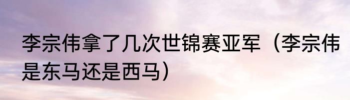 李宗伟拿了几次世锦赛亚军(李宗伟是东马还是西马)