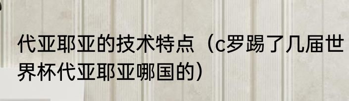 代亚耶亚的技术特点(c罗踢了几届世界杯代亚耶亚哪国的)