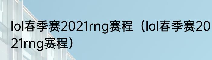lol春季赛2021rng赛程(lol春季赛2021rng赛程)