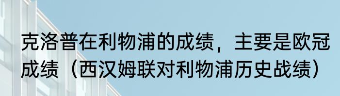克洛普在利物浦的成绩,主要是欧冠成绩(西汉姆联对利物浦历史战绩)