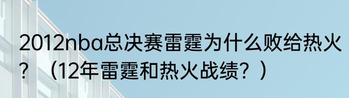 2012nba总决赛雷霆为什么败给热火?(12年雷霆和热火战绩?)