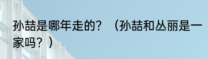 提及孙喆是哪年走的?(孙喆和丛丽是一家吗?)的相关内容,许多人不太了解,来看看小恩的介绍吧!