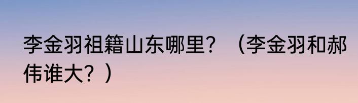 提及李金羽祖籍山东哪里?(李金羽和郝伟谁大?)的相关内容,许多人不太了解,来看看小俭的介绍吧!