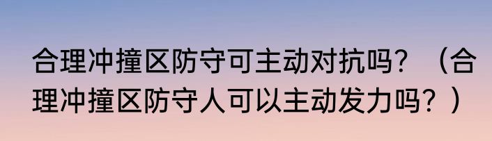 合理冲撞区防守可主动对抗吗?(合理冲撞区防守人可以主动发力吗?)