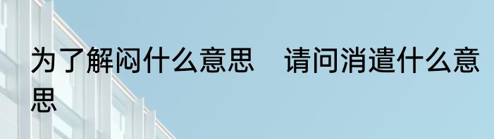 简介为了解闷什么意思?就是说为了解闷干那些无聊的事情来解闷而已,如果说我们无聊的时候我们可以做一点运动或者其他方面的活动来缓解自己的压