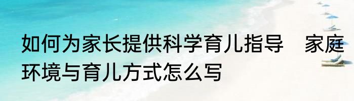 如何为家长提供科学育儿指导 家庭环境与育儿方式怎么写