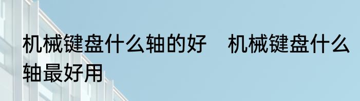 那么机械键盘什么轴好?