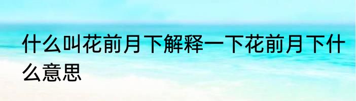 简介什么叫花前月下解释一下花前月下什么意思?花前月下:鲜花前面,月亮的下面站著一对情侣,两个人说说笑笑,就象河边溪溪,哗哗流水的声音,