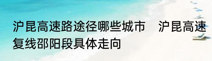 沪昆高速路途径哪些城市 沪昆高速复线邵阳段具体走向