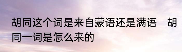 胡同这个词是来自蒙语还是满语 胡同一词是怎么来的