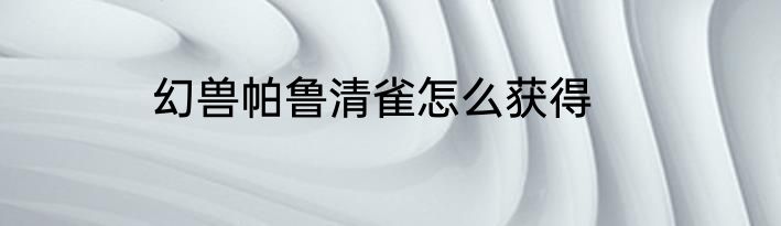 幻兽帕鲁清雀怎么获得