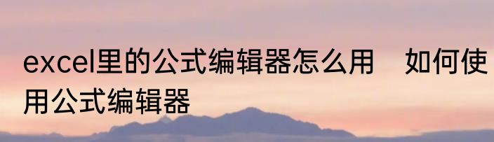 excel里的公式编辑器怎么用?