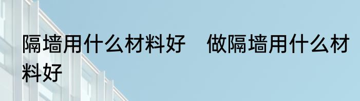 简介隔墙用什么材料好?选择隔墙材料需要考虑多个因素,如隔音效果、耐久性和安全性。常见的隔墙材料包括砖块、石膏板和轻钢龙骨结构等。砖块隔