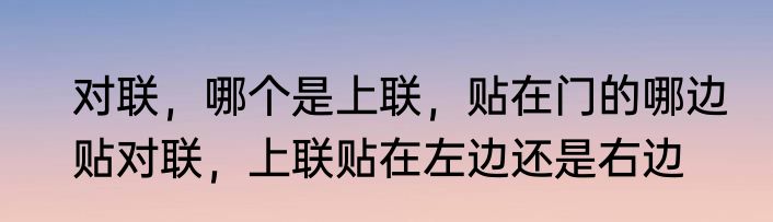 现在的对联跟以前的不一样,没有那么多讲究了.而且现在很多人根本分不清什么上联下联的.反正你怎么念的顺就怎么贴,现在横批大多都是从左往右的,上联贴左,下联贴右.如果真要较真儿,就这样,上联贴在门的右边,也就是说,你迎着门走来,上联是在你的右手边的。