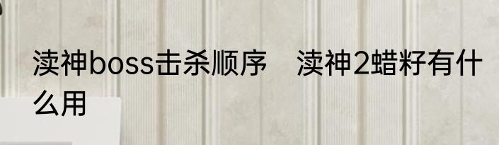渎神boss击杀顺序 渎神2蜡籽有什么用